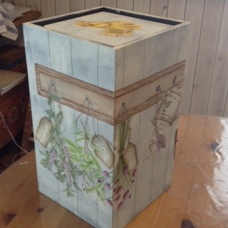 2019年第1作!! 投稿日時: 2019-02-19 投稿者: T.Mayuko バレンタインデーも過ぎ、今年もあっという間に2ヶ月が過ぎようとしています。 やっと新作が出来上がりました! 春に向けてガーデニングがテーマの作品です。 我が家のガーデンルームで使うダストボックスです。