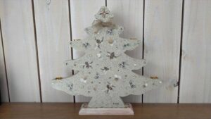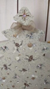 私も作品にビーズやボタン、レース、リボン、ドライフラワー等を取り入れていますが、これからの制作のヒントを沢山もらえました。最後2枚の写真のクリスマスツリーは、友人へのクリスマスプレゼントに描きました。ビーズやリボンをあしらっています。