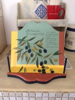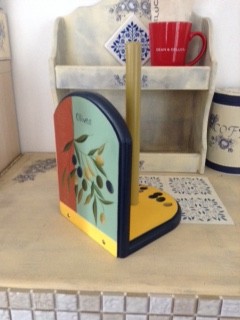 プロヴァンス地方のオリーブの香りをキッチンに 投稿日時: 2016-03-20 投稿者: T.Mayuko 新作はプロヴァンス土産のテーブルクロスのモチーフにヒントを得て描いてみました! レシピスタンドとキッチンペーパーホルダーです。